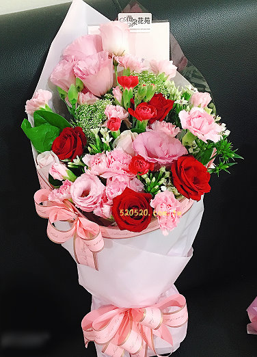 6朵玫瑰花+33朵中康乃馨搭配深山櫻