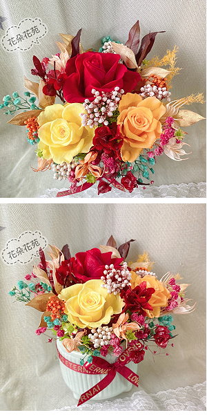 永生玫瑰7公分1朵+4公分2朵搭配其他永生花材 *請3天前預訂 產品描述