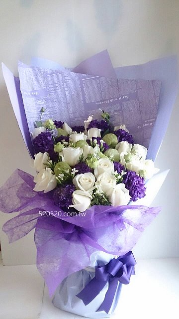 20朵特級白玫瑰花+紫色桔梗花束