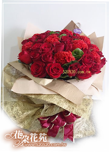 15朵紅玫瑰搭配紅雞冠花束 (*此束花請2個工作天前預定唷)