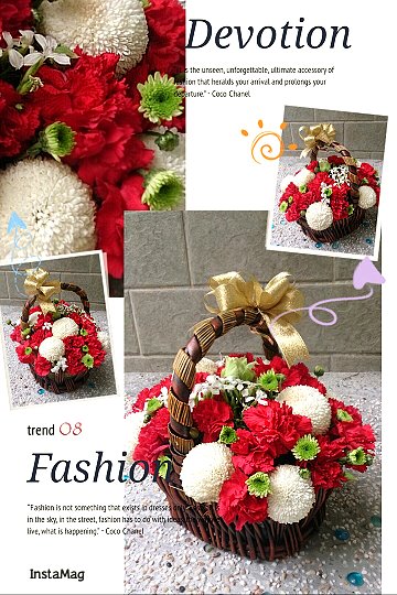 紅色中康乃馨.白色乒乓菊.深山櫻*如遇提籃缺貨將改瓷器